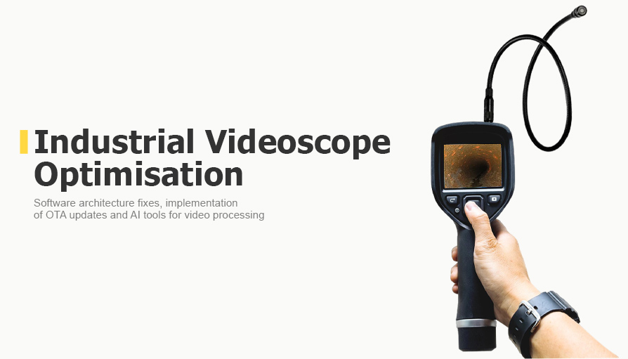 Project in Nutshell: We helped our client launch their product, an industrial videoscope, into mass production and bring it to market on time. In a tight timeframe, we improved the software architecture to resolve spontaneous reboot and video stream freezing. In addition, we implemented OTA (over-the-air) updates to reduce maintenance and operating costs by up to 30%.