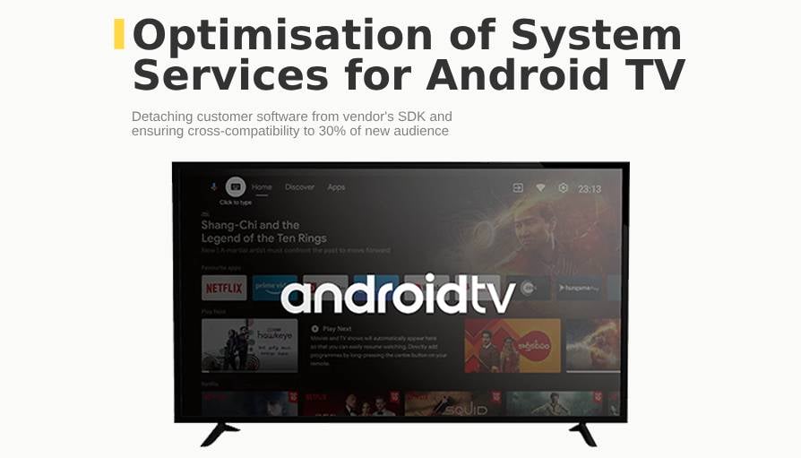 Project in Nutshell: Our client detached their software from a vendor-specific SDK to attract up to 30% of new audience and reduce maintenance costs by 20%. To make it possible, we designed and developed a cross-platform abstraction layer and optimised system services for Android TV.