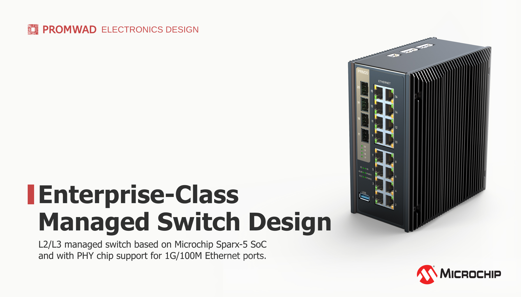 The hardware platform of the L2/L3 managed switch is based on components from Microchip: