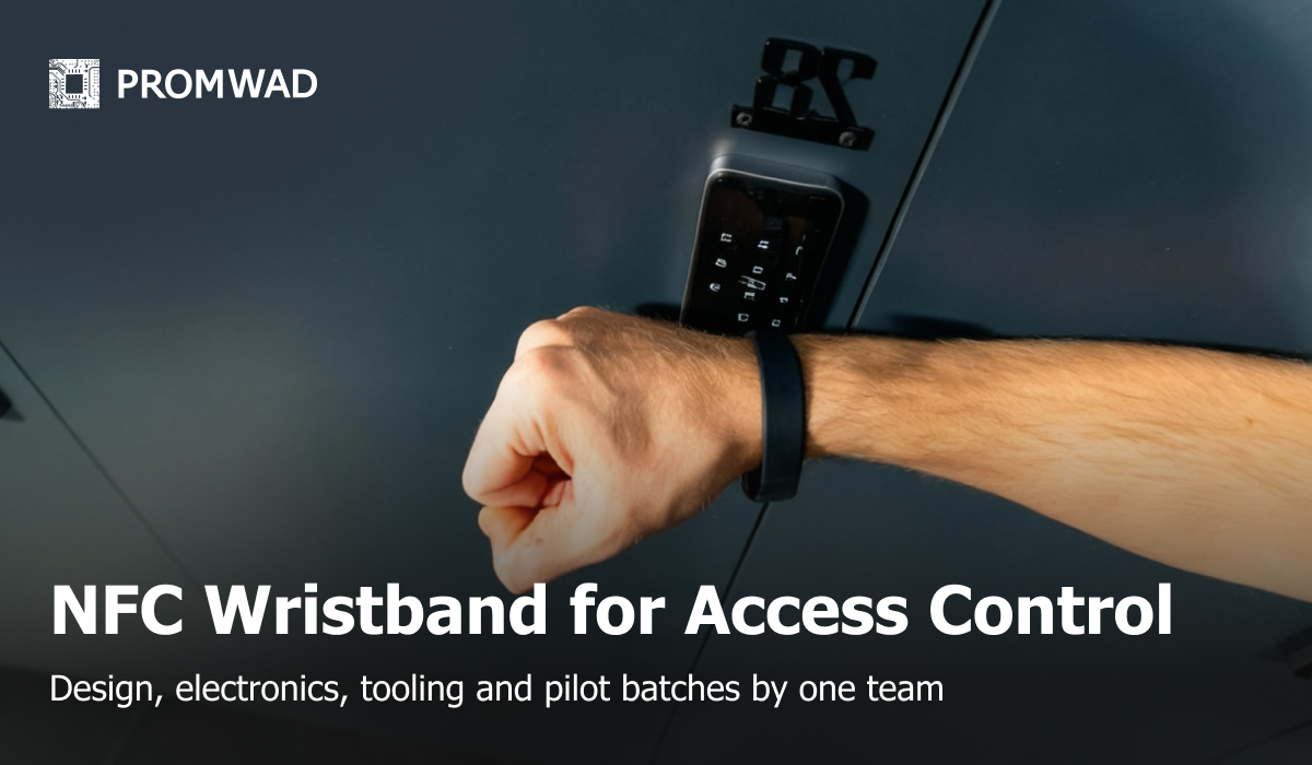 The NFC access bracelet project demonstrates rapid end-to-end hardware development — from concept and industrial design to flexible PCB electronics and pre-series production. Promwad engineers created a non-transferable, tamper-resistant wearable pass with a molded silicone enclosure and optimized antenna geometry for reliable NFC communication.