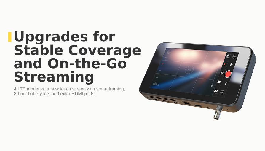 - Increasing the number of LTE modems from two to four so the device can connect to multiple mobile operators for a more stable connection. The system will automatically select the best data transfer speed operator and optimise video quality at equal speeds.