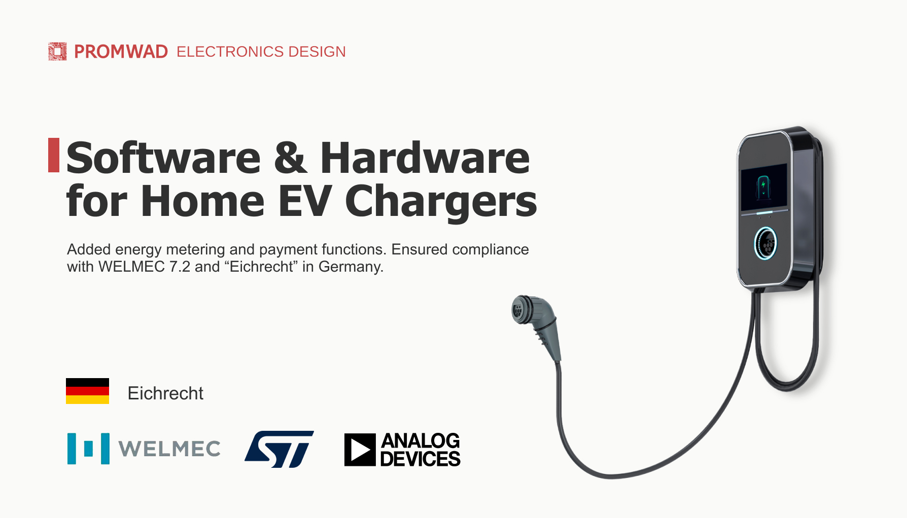 Promwad developed both software and hardware parts for the home EV charger, including: